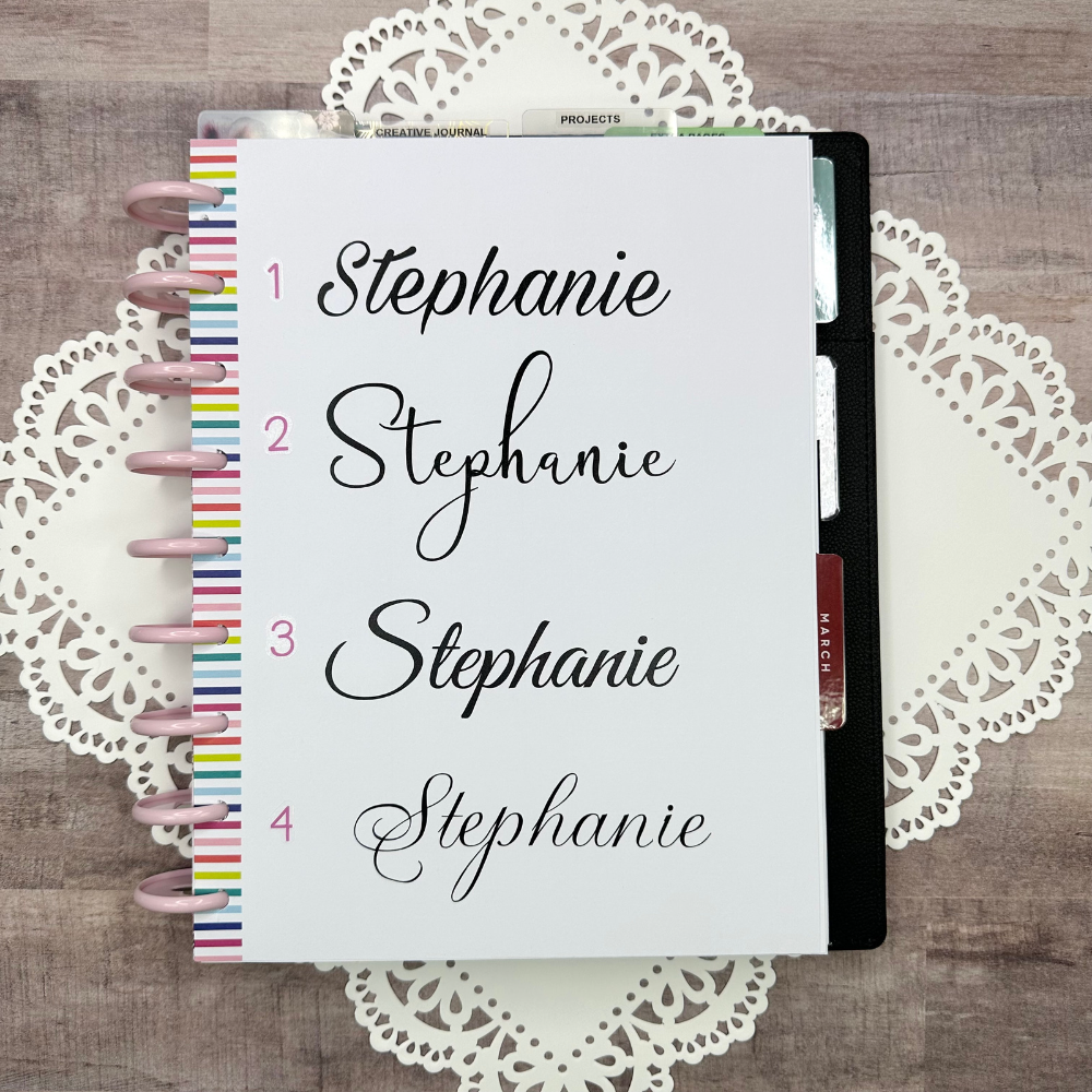 Add one of these beautiful custom vinyl name decals to your Happy Planner “Hello” page!