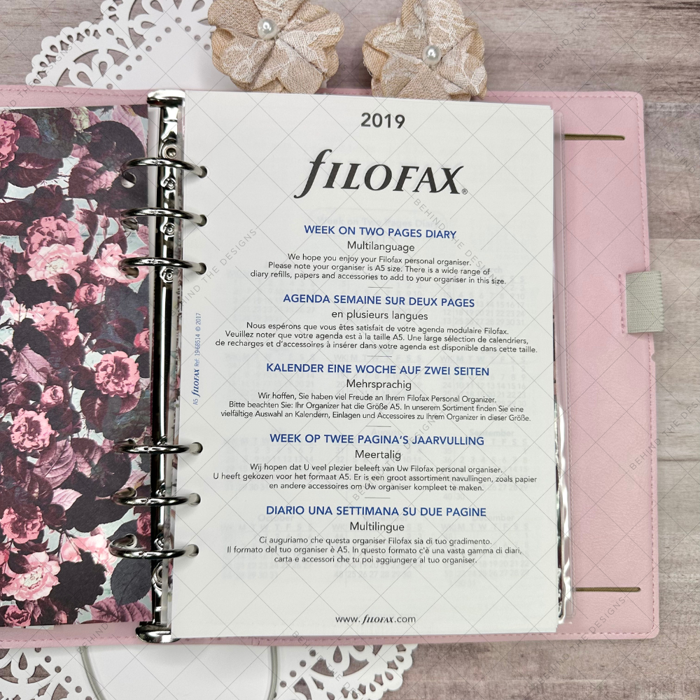 Planner DESTASH – Filofax Domino Soft A5 Organizer in Pale Pink 2019. Fully decorated using November 2017 Planner Society kit. This loaded planner bundle is ready to start using!