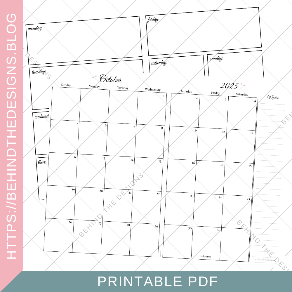 This digital download includes 11 pages total! You get 6-months of dated monthly calendars that run from October 2025 through March 2026; plus, 5 undated weekly pages with notes.